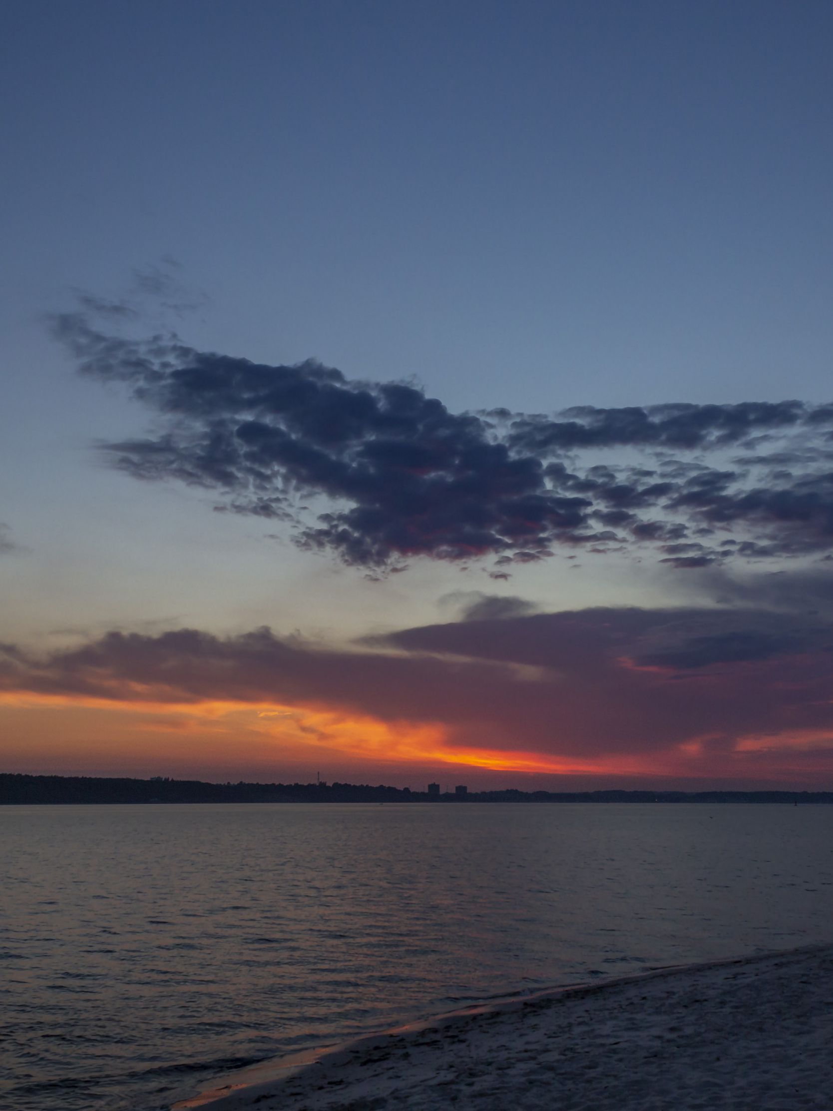 Ein wunderbarer Himmel über der Kieler Förde. Das Hintergrundbild entstand kurz nach dem Sonnenuntergang im Ostseebad Laboe.