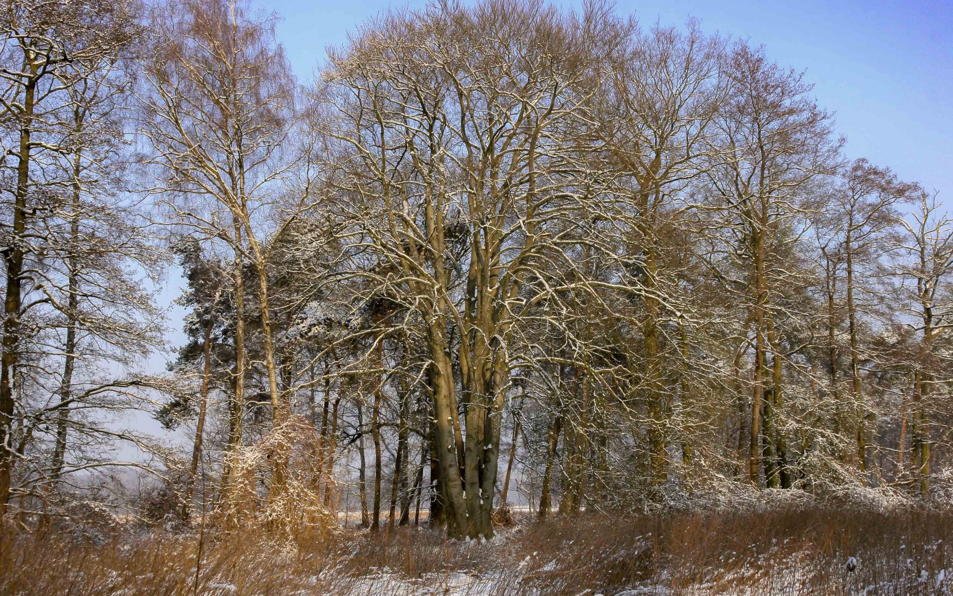 So schön kann Winter sein. Unser Hintergrundbild zeigt einige Bäume im Naturschutzgebiet Hervester Bruch in Dorsten.