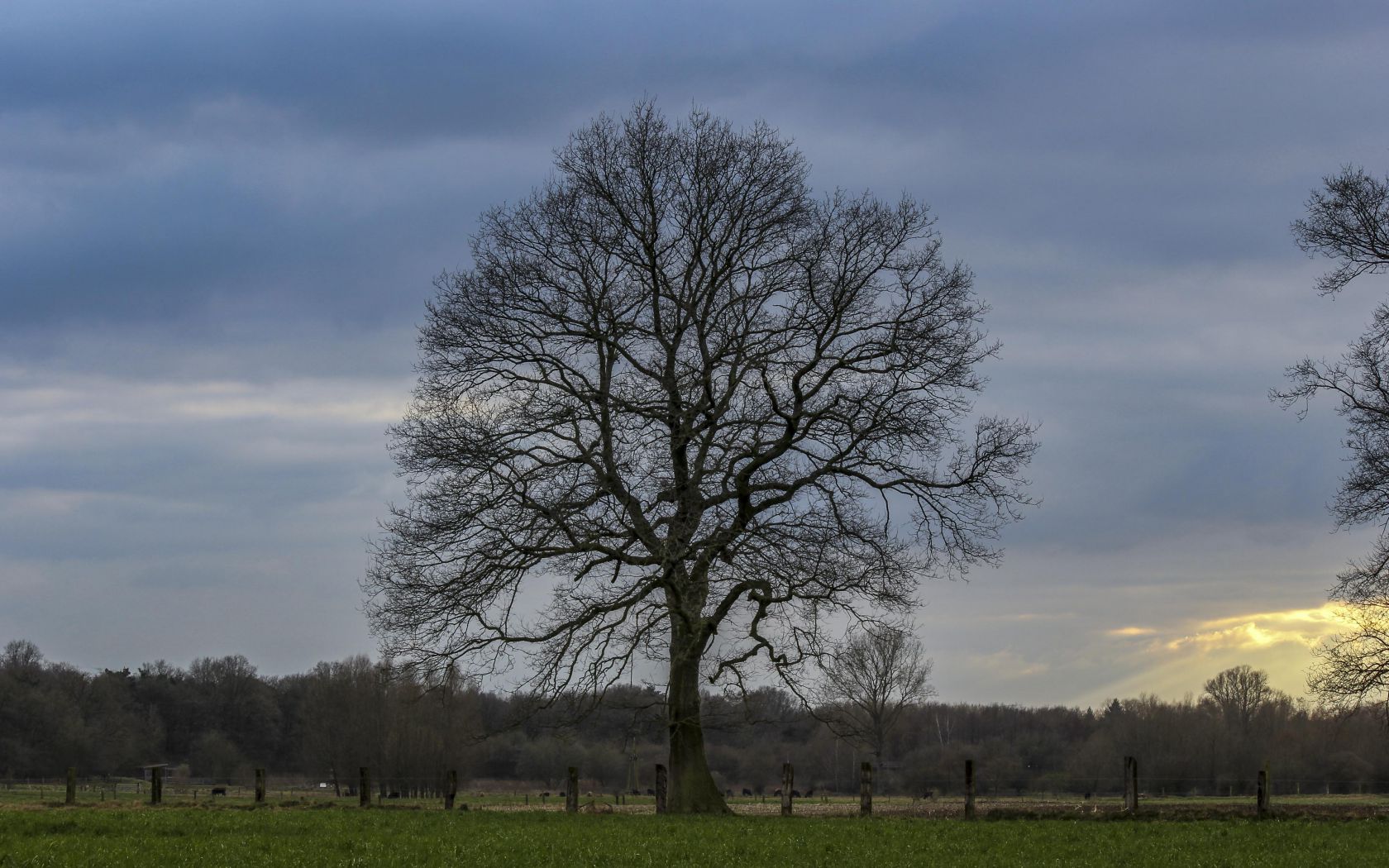 Es ist zwar schon Frühling, aber dieser einzelne Baum hat davon noch nicht viel mitbekommen. Ihm fehlen noch die Blätter, doch ein gutes Motiv für ein Hintergrundbild bietet er allemal.