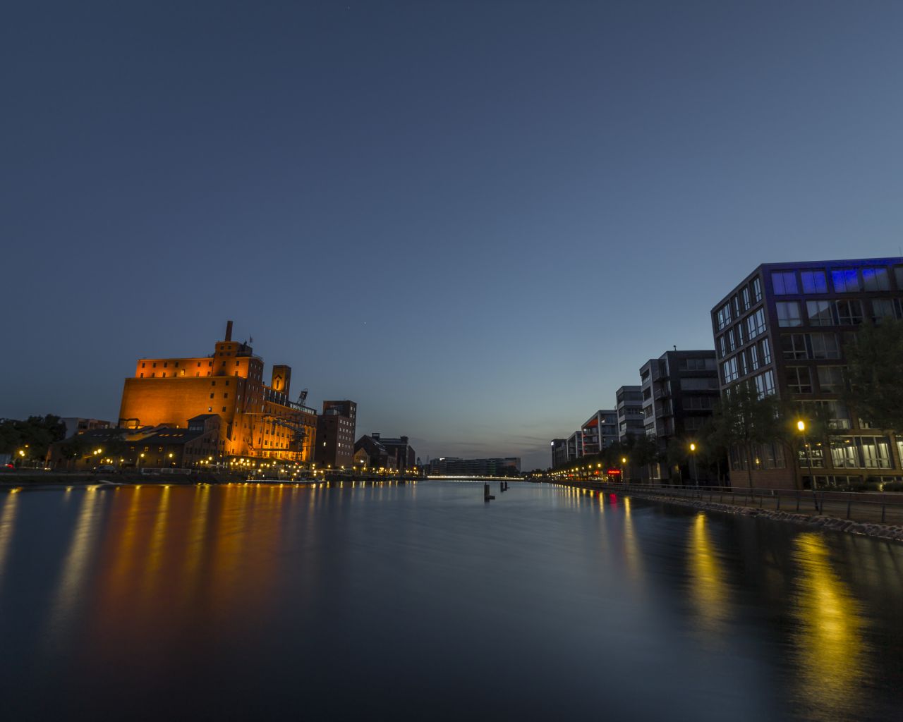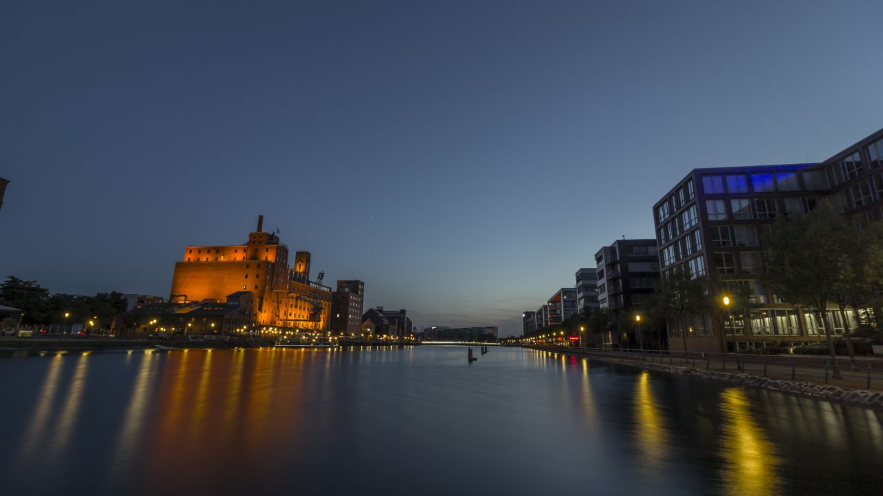 Das Hintergrundbild "Blaue Stunde Duisburger Innenhafen" von Michael Wieck wurde bisher 593 Mal heruntergeladen.Fotograf, Quelle und Lizenz