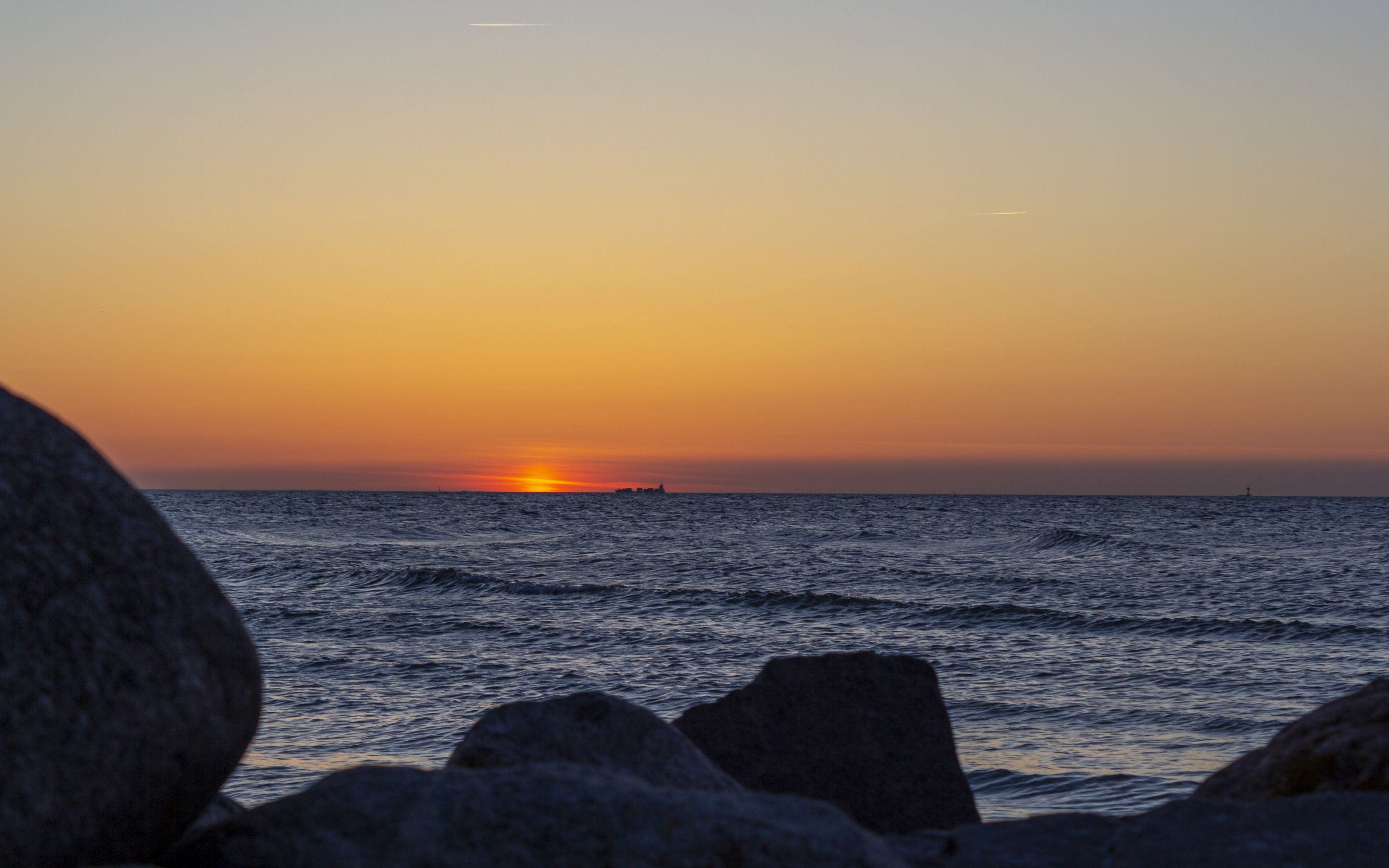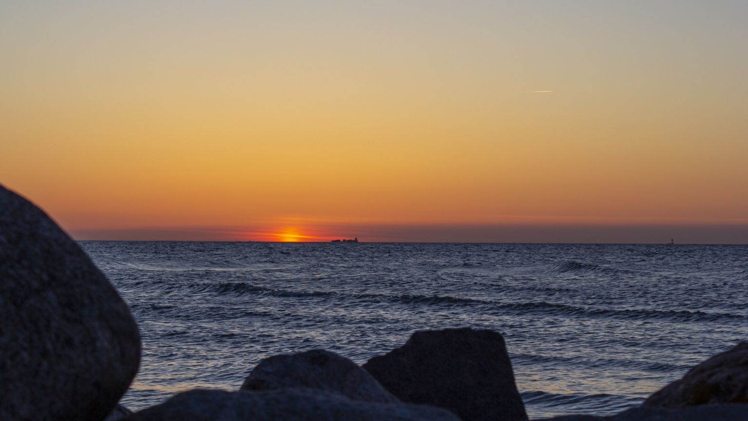 Das Ende eines herrlichen Tages. Das Hintergrundbild zeigt einen wunderschönen Sonnenuntergang über der Ostsee. Die Aufnahme entstand am Schönberger Strand.