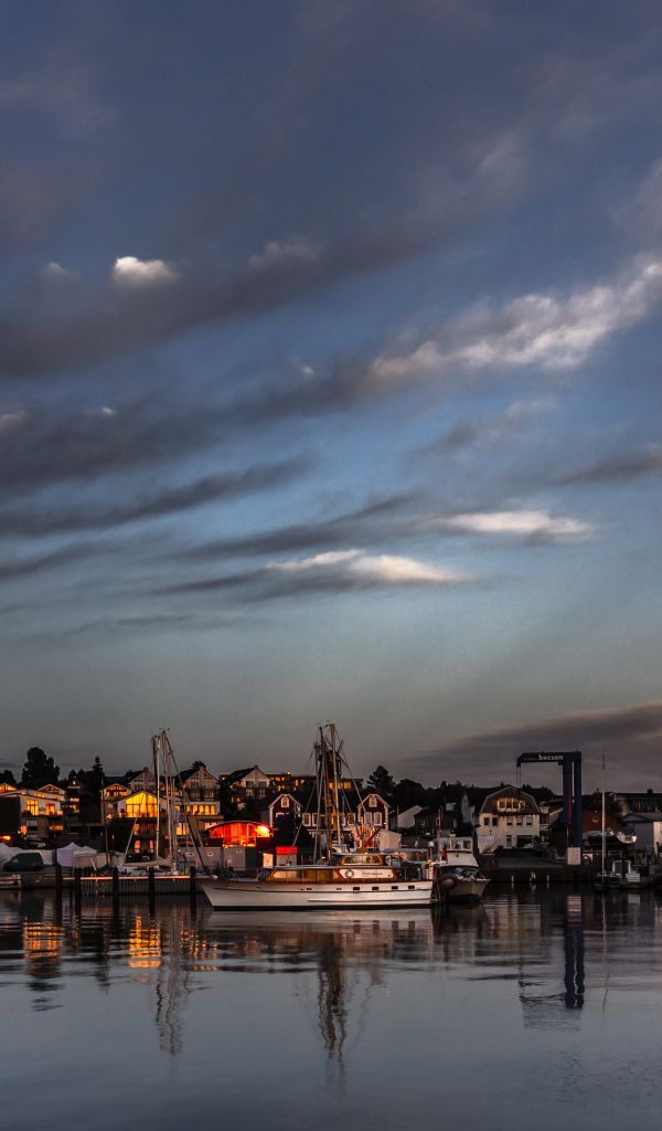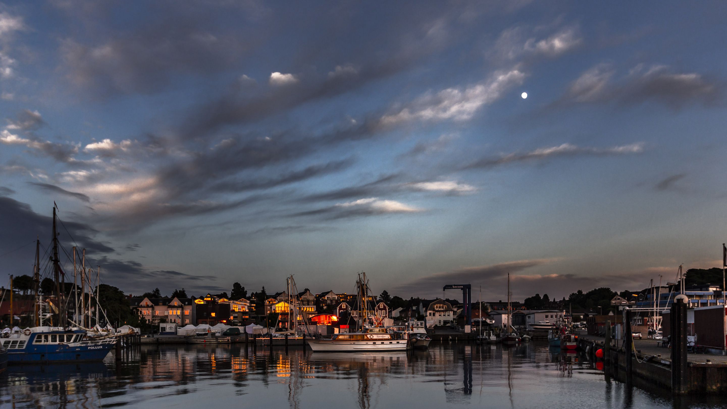Nach dem Sonnenuntergang zeigt sich ein besonders schöner Himmel über dem Hafen über Laboe. Das Hintergrundbild entstand im Frühjahr an einem milden Abend.