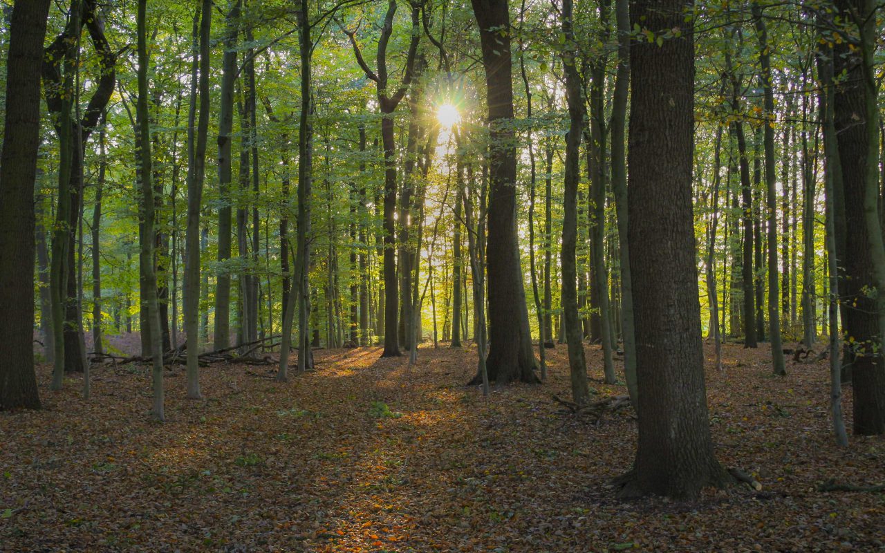 Unser Hintergrundbild zeigt die niedrig stehende Herbstsonne, die in einen Buchenwald scheint. Das Wallpaper entstand im Barloer Busch in Dorsten.