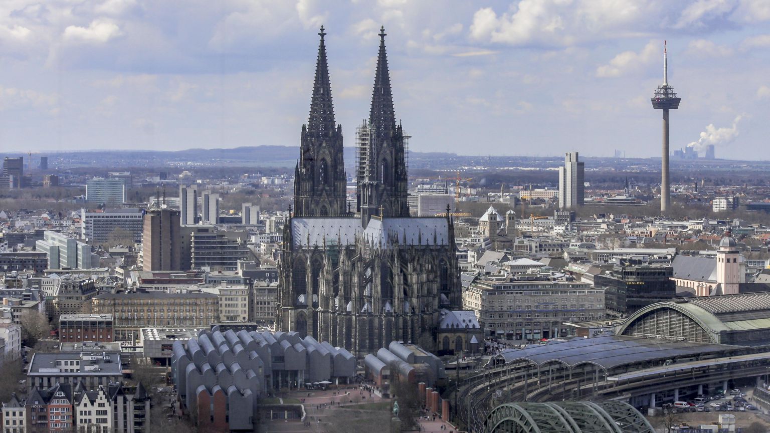 Der Kölner Dom gehört zu den wichtigsten Sehenswürdigkeiten in Deutschland. Er wurde 1996 von der UNESCO zum Weltkulturerbe erklärt. Links neben dem Dom sieht man das Museum Ludwig. Es ist ein über Kölns Grenzen hinaus bekanntes Museum in der Kunst des 20. und 21. Jahrhunderts gezeigt wird. Rechts sieht man Teile des Kölner Hauptbahnhofs, der ebenfalls direkt am Dom liegt. Die Aufnahme entstand von der Aussichtsplattform des KölnTriangle, einem Hochhaus das auf der rechten Rheinseite gegenüber dem Dom liegt.