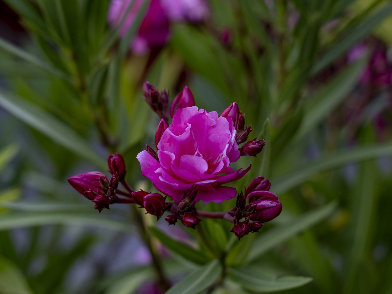 Der Oleander gehört bei uns zu den beliebtesten mediterranen Kübelpflanzen. Unser Hintergrundbild zeigt die Nahaufnahme einer rosa Oleanderblüte.