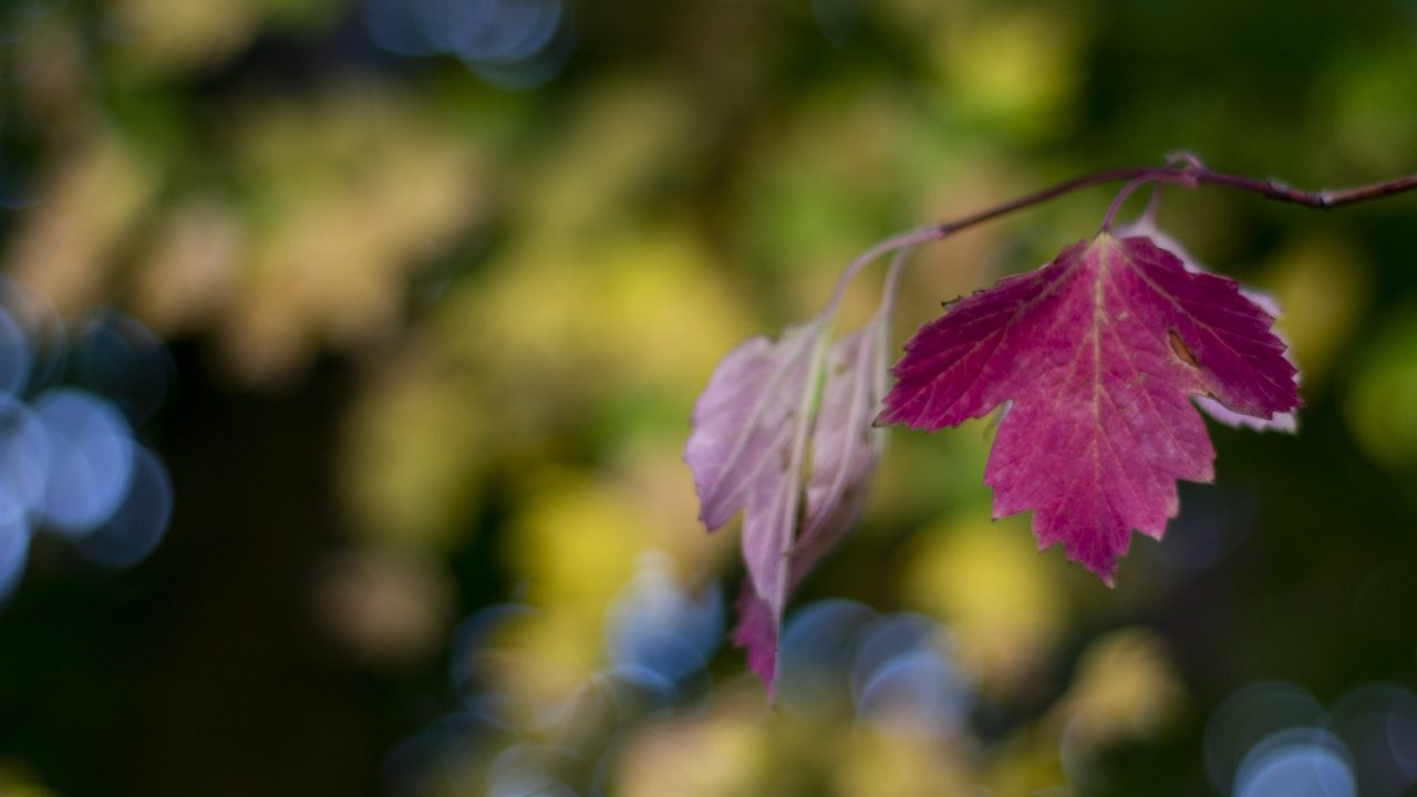 Ein einfaches und wunderschönes Herbstmotiv. Das Hintergrundbild zeigt kein kleines rotes Blatt im Abendlicht.