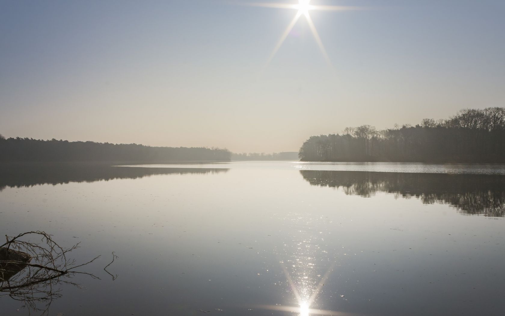 Unser Wallpaper zeigt einen Sonnenaufgang am Hullerner Stausee. Die Talsperre Hullern, wie der See auch heißt, ist ein beliebtes Naherholungsgebiet im Münsterland. Das Hintergrundbild entstand an einem an einem nebeligen Frühlingsmorgen.