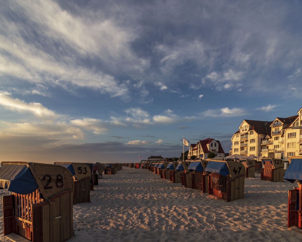 Der Strand von Laboe im Licht der untergehenden Sonne. Das Hintergrundbild entstand an einem wunderschönen, milden Frühlingsabend im Mai.
