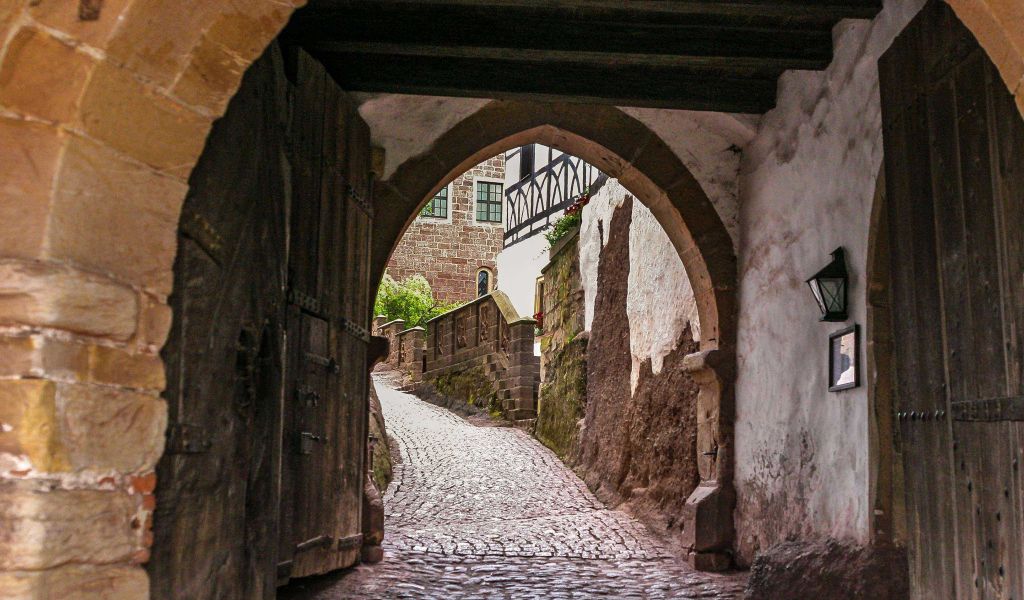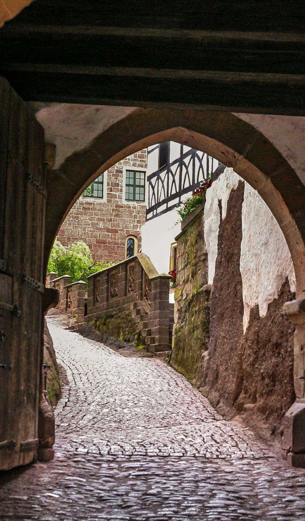 Das Wallpaper zeigt den Blick in das Torhaus der Wartburg in Eisenach. Von hier aus geht es in den Innenhof der Burg.
