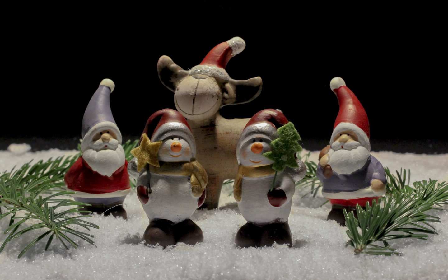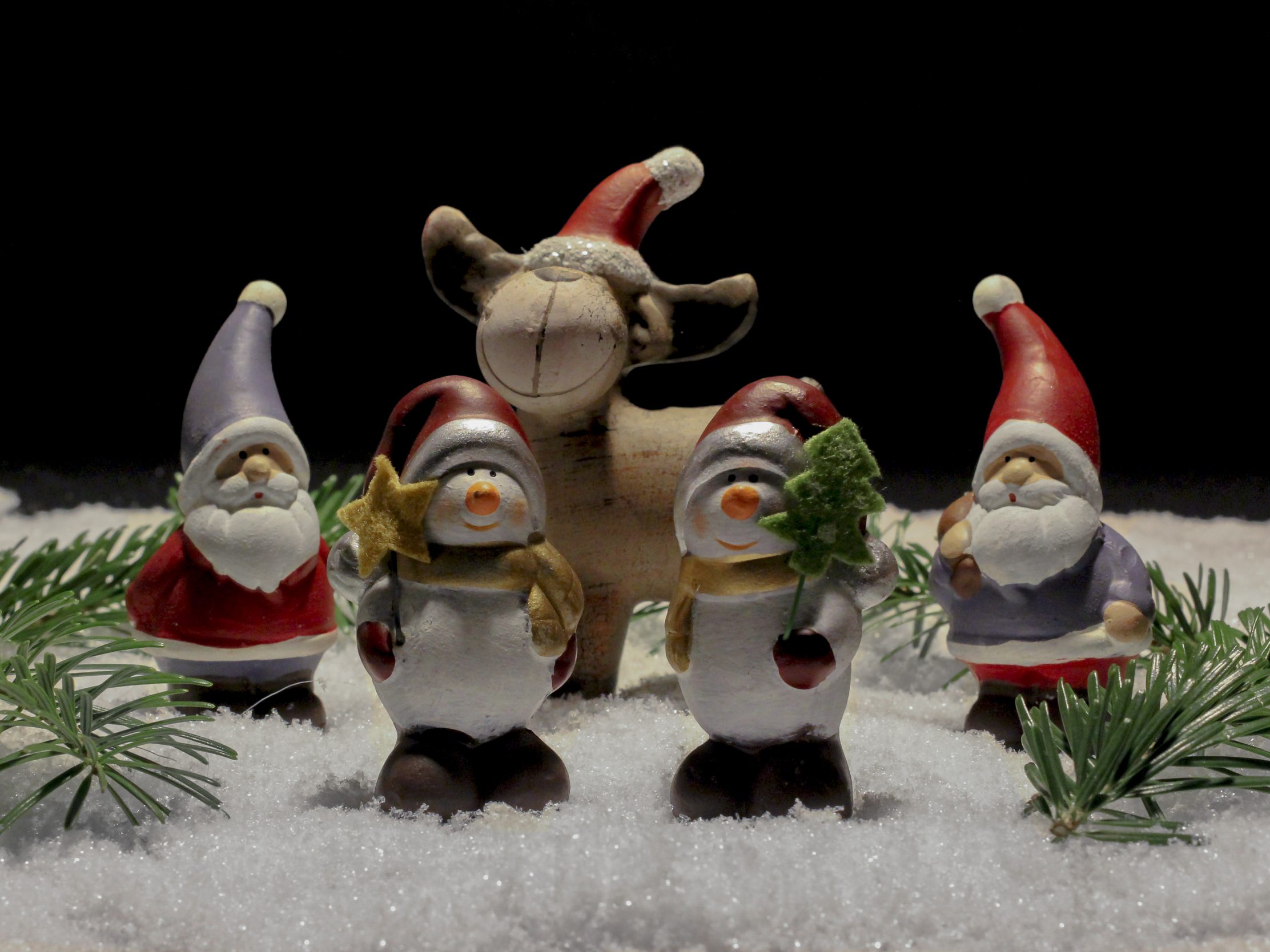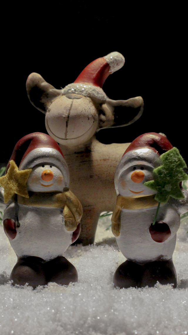 Hintergrundbilder zu Weihnachten. Wichtel, Schneemänner und dazu ein Rentier mit rotweißer Mütze. Mehr braucht es nicht für ein schönes Adventswallpaper.