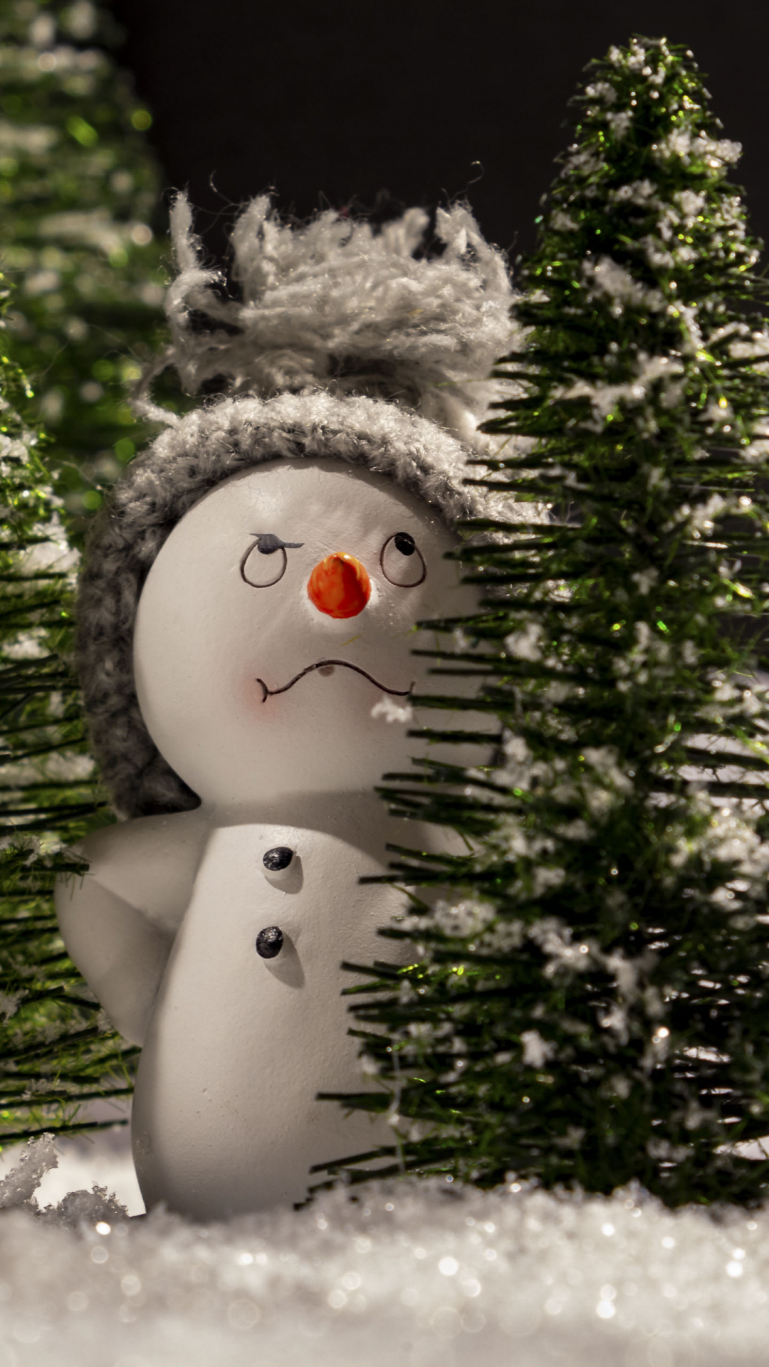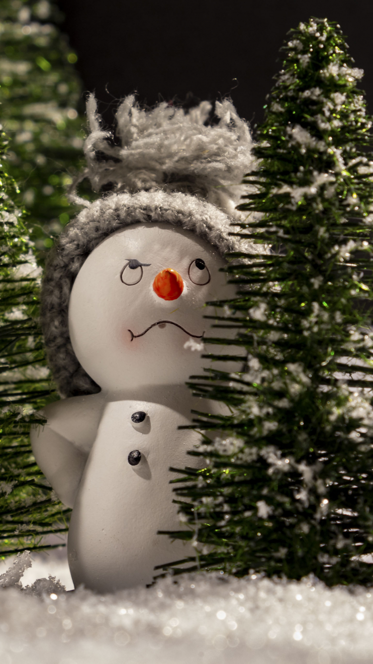 Hintergrundbilder zu Weihnachten. Warum dieser Schneemann so furchtbar mürrisch schaut, wissen wir nicht. Ein schönes Wallpaper für den Advent ist das Motiv auf jeden Fall.