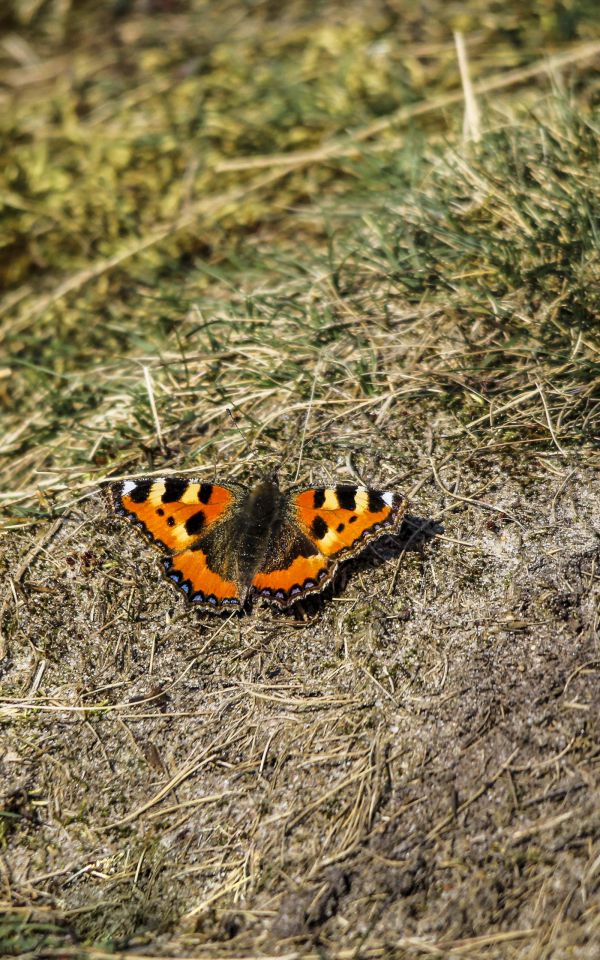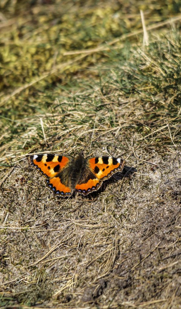 Sobald es wieder wärmer wird, sind auch die ersten Schmetterlinge zu sehen. Ein Kleiner Fuchs genießt bereits die ersten warmen Sonnenstrahlen. Das Hintergrundbild mit der Nahaufnahme des Schmetterlings entstand an einem milden Frühlingstag in der Westruper Heide in Haltern.