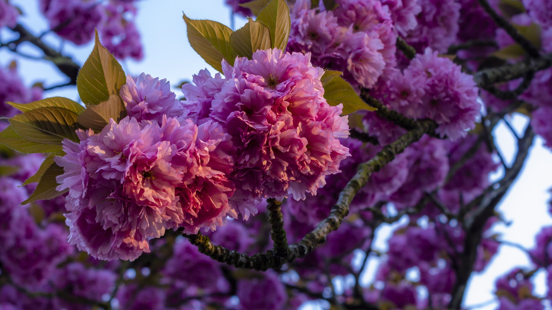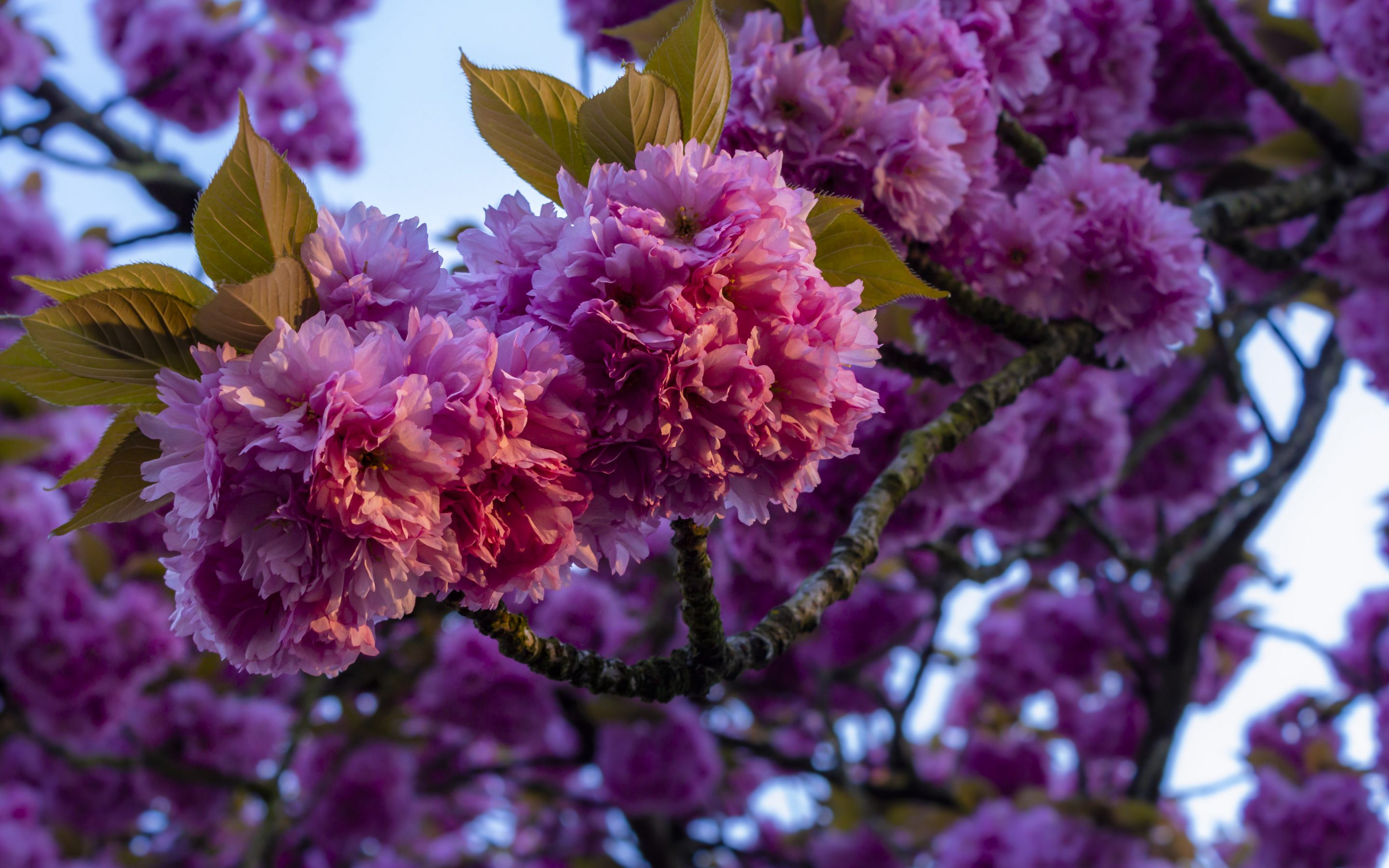 Diese herrlichen Wildkirschblüten bekommen noch die letzten Sonnenstrahlen mit, während der Bereich dahinter schon im Schatten liegt.