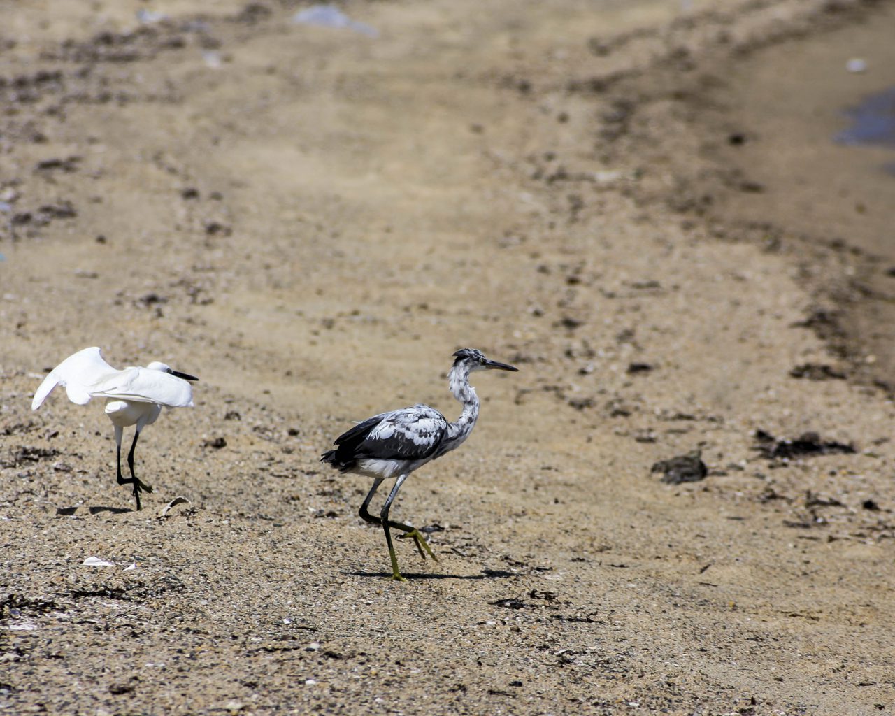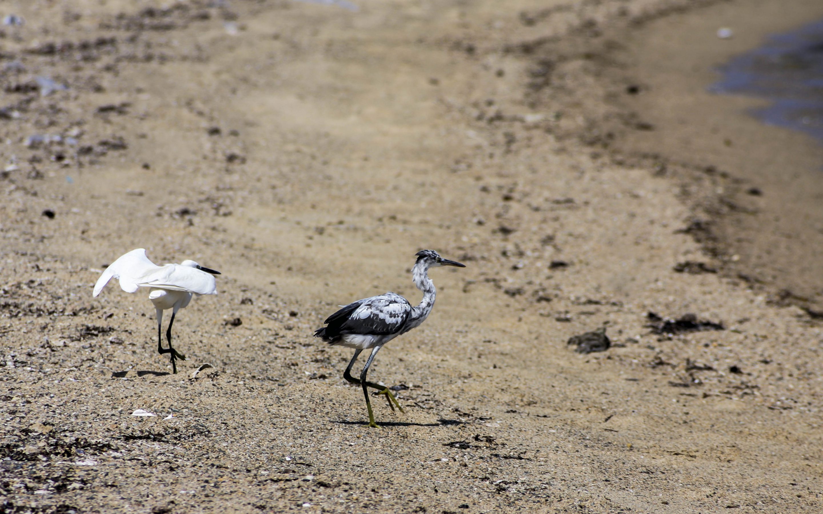 Unser Hintergrundbild zeigt zwei Ägyptische Reiher am Strand des Roten Meeres. Die Aufnahme entstand am Strand von Marsa Alam in Ägypten.